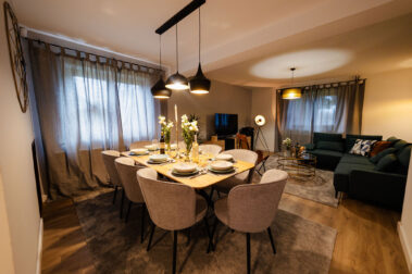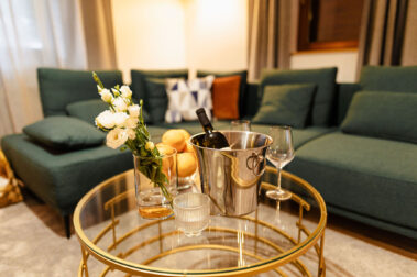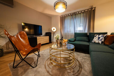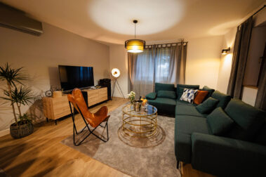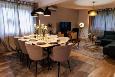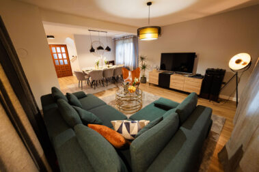 The living room is located in the common room with the dining room on the ground floor of the building. The space is pleasantly decorated, and the view from the room is on 3 sides, surrounded by nature. By staying in this room, you can spend pleasant moments together either enjoying a vacation, socializing or having fun.