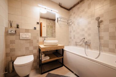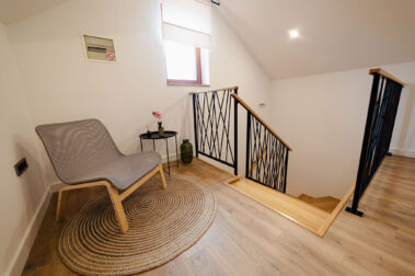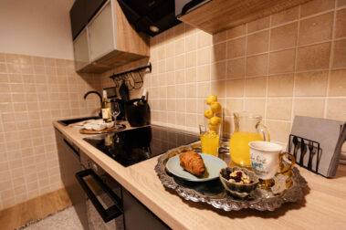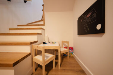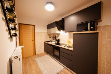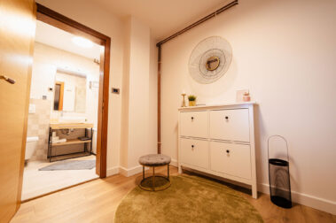 On the ground floor there is also a fully equipped kitchen and a shared bathroom with storage (washing machine, tumble dryer, vacuum cleaner).